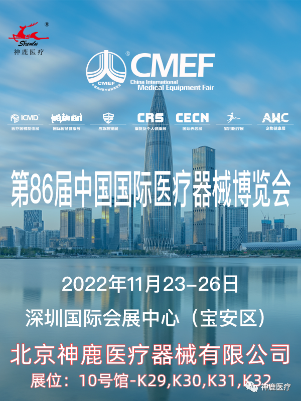 您好!2022第86届中国国际医疗器械博览会(CMEF),将于2022年11月23日至11月26日在深圳国际会展中心(宝安区·新馆)举行,北京神鹿医疗器械有限公司届时将组团参展。欢迎您的光临洽谈!