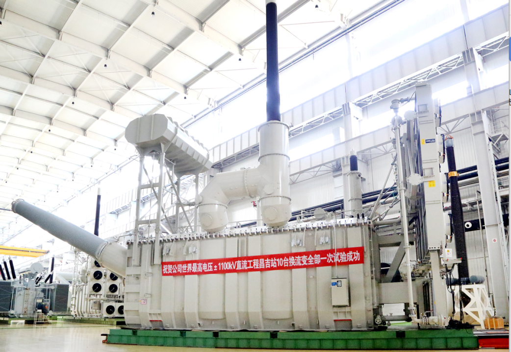 集团公司所属企业为昌吉-古泉±1100千伏特高压直流输电工程研制一系列关键设备:世界直流输电电压等级最高、容量最大的换流变压器,世界首支±1100千伏直流环氧芯体SF6气体复合绝缘穿墙套管,世界首台±1100千伏气体绝缘直流穿墙套管,世界电压等级最高的±1100千伏全光纤直流电流互感器,世界电压等级最高的±1100千伏直流电压分压器,世界首台1100千伏交流滤波器组断路器。
