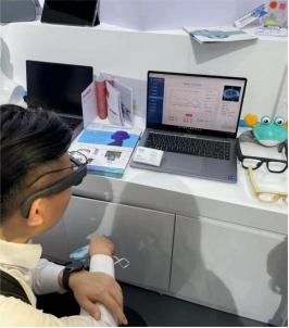 BIAI的明星产品,具有自主知识产权和核心技术的“黑科技”——BIAI脑控眼镜在这次高交会上更是人气爆棚,吸引众多观展商前来打卡体验。BIAI开发的这款脑机交互式智能眼镜,能监测视觉注意力与疲劳度,最终的产品功能定位是同时保护孩子们的眼睛和大脑,提升学习效率,尤其适用于中小学毕业班学生。