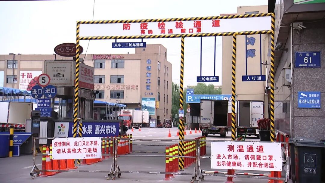 嘉兴水果市场复市后将进行封闭式管理,水果市场各个小门都有防疫人员值守和查验。