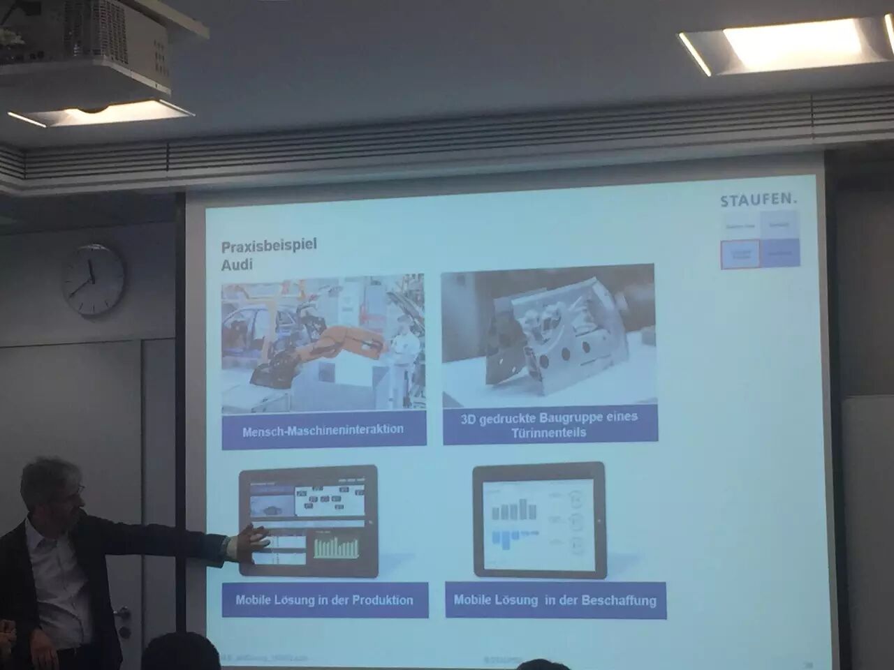 目前车身制造全部自动化,最终组装还是需要人工,工业4.0涉及的业务有预测维护,3d打印样品,数字化工厂,灵敏机器人协助等,值得提出的是奥迪先数字模拟运营,再投入运用。