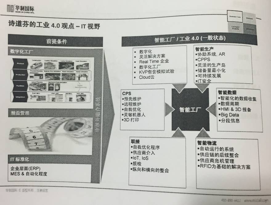 需要强调的是,践行工业4.0,一定不能跳过精益管理这块,据我所知,中国企业很容易跳过这块,看到有了信息化智能化,就可以节省人力成本,但并没有那么简单。直接跳过精益管理是不可能完成工业4.0的。