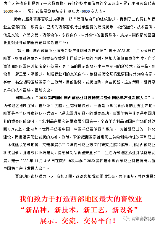 您的关注,就是我的动力合作热线:15302628562、15338727365精彩推送成功没有快车道,幸福没有高速路。所有的成功,都来自不倦的努力和奔跑;所有幸福,都来自平凡的奋斗和坚持。深圳畜牧视界长按识别二维码,畜牧视界好文!必须点赞