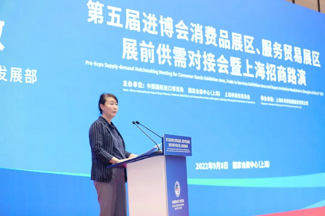 2022年9月8日,第五届进博会消费品展区、服务贸易展区展前供需对接会暨上海招商路演在国家会展中心(上海)举办。本次活动以线上线下相结合的形式,由中国国际进口博览局、国家会展中心(上海)、上海市商务委员会主办,上海外高桥集团股份有限公司承办。