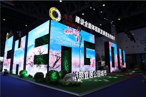 随着成都打造全球最长的绿道慢行系统——天府绿道慢行系统,全长16930公里,其唯一性将再次被凸显。作为我市重点工程,天府绿道不只是城市绿道慢行系统,还承载着文化、体育、休闲等功能。本次的成都馆是以“九天开出一成都,万户千门入画图”为创作主题,用大型LED连屏造型“CHENGDU”的展馆设计,将成都公园城市的春夏秋冬及城市繁华以动态视频震撼呈现,展馆内将天府绿道原汁原味“搬”到了整个展区,3条绿道蜿蜒贯穿整个成都馆,漫步绿道,结合竹经济与竹文化进行多处造景,可谓一步一景一繁华,以三阶视角情感体验,展现了成都“推窗见田、开门见绿”,建设“绿满蓉城、花重锦官、水润天府”的美丽宜居公园城市形象。
