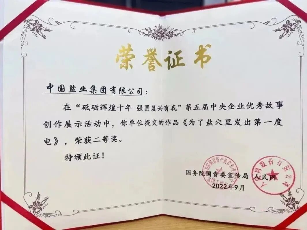 2022年4月13日,共青团中央颁发《关于表彰全国五四红旗团委(团支部)、全国优秀共青团员、全国优秀共青团干部的决定》,对一批团组织、团员和团干部进行表彰,其中,中盐内蒙古化工股份有限公司盐碱分公司团总支被授予“全国五四红旗团支部”称号。
