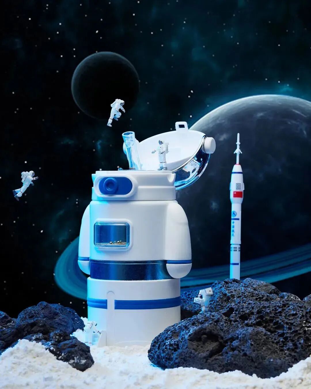 这个保温瓶是宇航员的形状,它激励孩子们思考未来,享受未来。我特别喜欢这种友好的乐观主义。