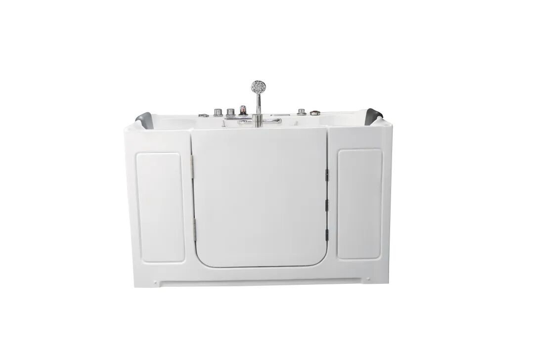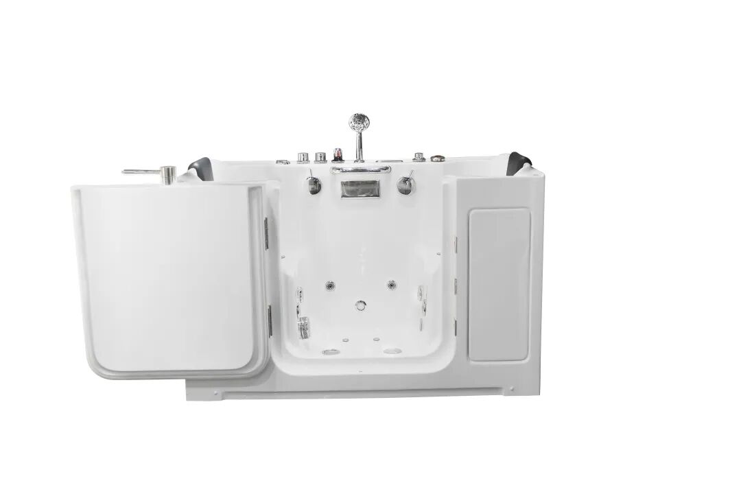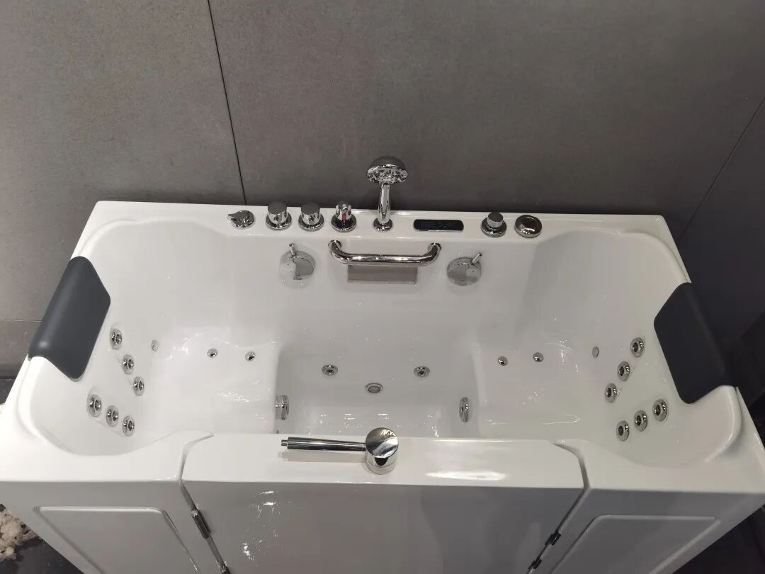 双人步入式浴缸,可供两个人同时使用,全功能设计,100%亚克力材料,门锁和胶条都有专利,全新的单独脚部按摩功能。外开门设计,大空间,低台阶专为老人和身体不便人士设计,让他们更独立,更自信地享受洗浴快乐。