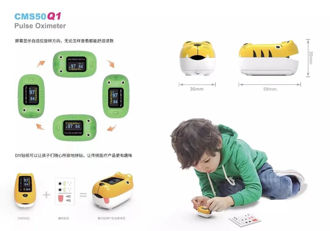 产品采用了贴纸设计,极大提升生产效率,也给了孩子们自己创作的空间,通过自己动手创作一个卡通形象更能建立起孩子和血氧仪之间的联系与羁绊,拉近血氧仪与孩子在心理上的距离,让检测不再被排斥。