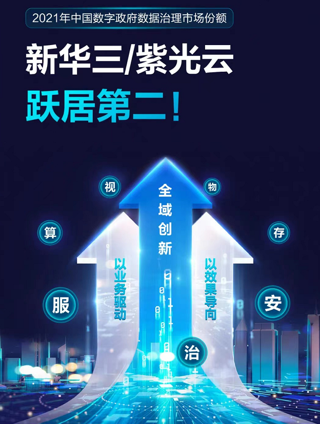 9月,IDC发布了最新的《中国数字政府数据治理市场厂商份额,2021》,紫光股份旗下新华三集团和紫光云以5.9%的市场份额位居中国市场第二位,展现了其在赋能数据资源开发利用,推动政府治理体系和治理能力现代化上的实力与价值。