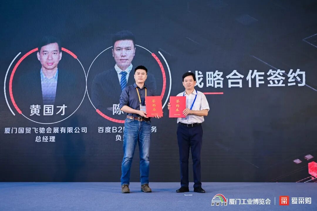 基于此次厦门工博会深度合作,厦门国贸飞驰会展有限公司总经理黄国才先生和百度B2B业务商务负责人陈真先生分别代表2022厦门工博会主办方与爱采购进行战略签约,双方将在未来继续探索工业行业更多创新场景,充分发挥线上采销平台和线下专业展会的资源优势,贯通更多供需,帮助工业行业加速发展。