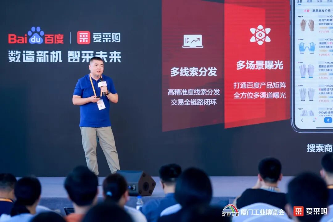 接着,百度爱采购副总经理甘露围绕定制、批发、源头工程等核心场景,深度剖析了爱采购在工业品B2B智慧采销场景中的价值。基于平台优势,百度爱采购资深产品经理吴英楠进行了商家经营战略的分享。通过多线索分发、多场景曝光、专属企业名片、多终端阵地等能力,爱采购将为商家带来更多生意机会。