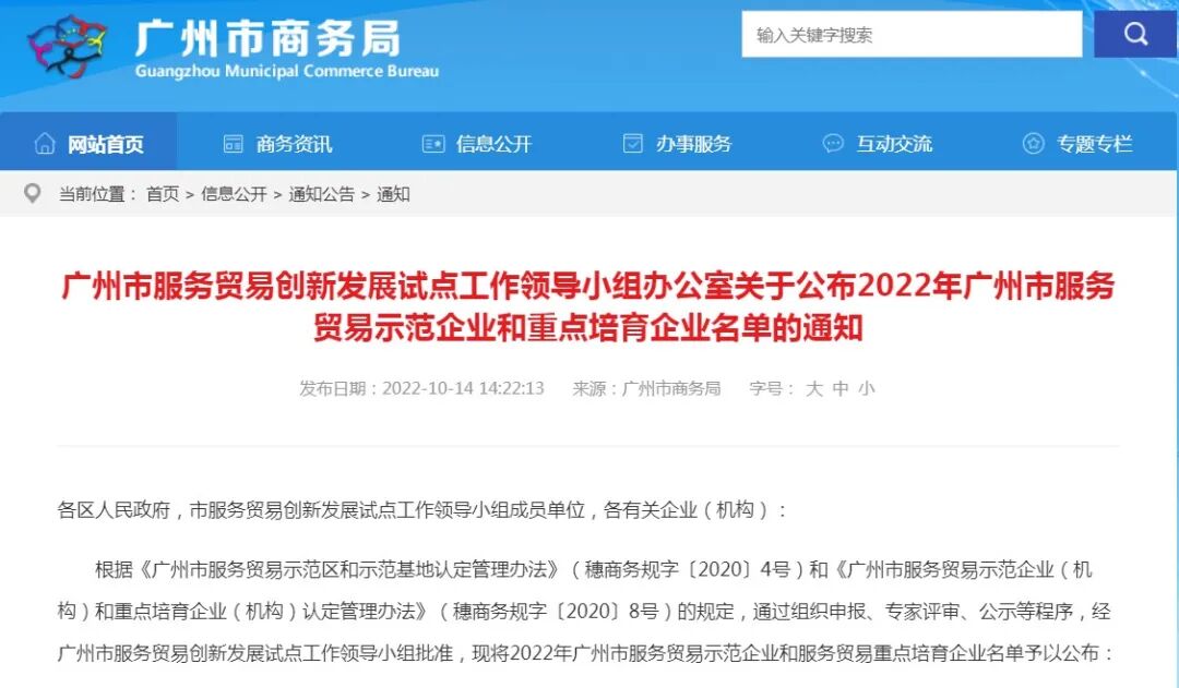 2022年广州市服务贸易示范企业和重点培育企业名单发布