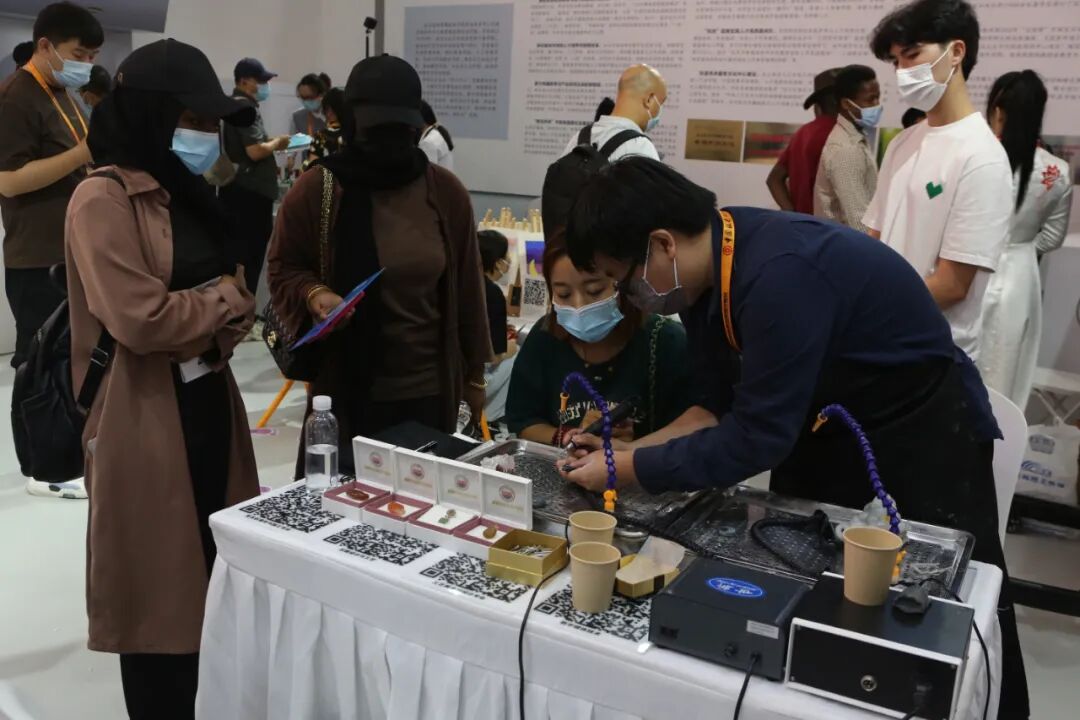 学校文旅服务专题展位着力打造珠宝与艺术设计学院非遗传承特色,现场邀请观众体验花丝镶嵌编制、錾刻、搜活等技艺,传播中国千年花丝镶嵌技艺魅力的同时,展示了花丝镶嵌非遗技艺产业学院在高职院校的成功实践。