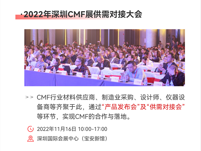 本届展会汇聚了武藏、信越有机硅、东丽、万华化学、松井新材……200多家展商,展现CMF行业前沿技术、最新产品、市场趋势等,聚焦化解企业在外观设计、产品功能、选材采购等方面面临的困惑和难点。