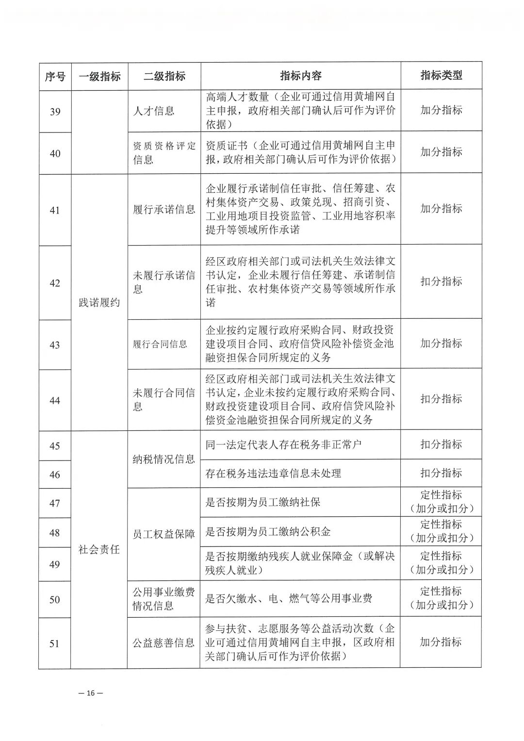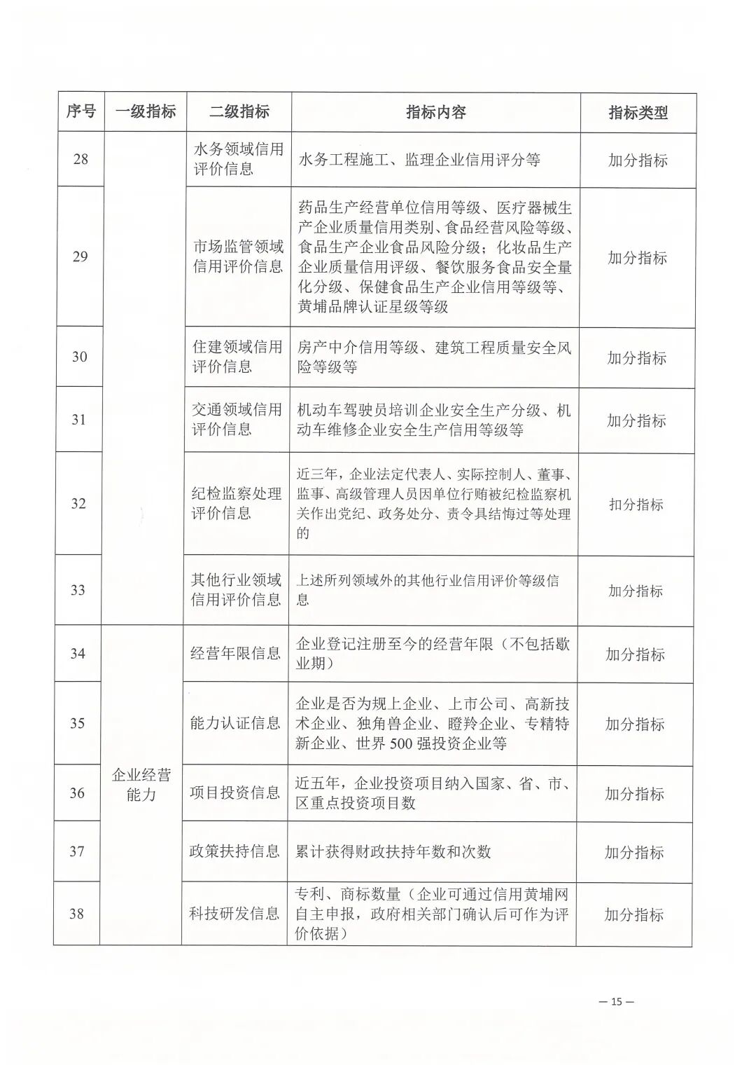 参照《黄埔区 广州开发区企业公共信用综合评价管理办法》里的指标表。企业专利、商标数量、高端人才数量、资质证书、公益慈善信息等均为加分指标。企业可通过信用黄埔网自主申报,区政府相关部门确认后可作为评价依据获得加分。