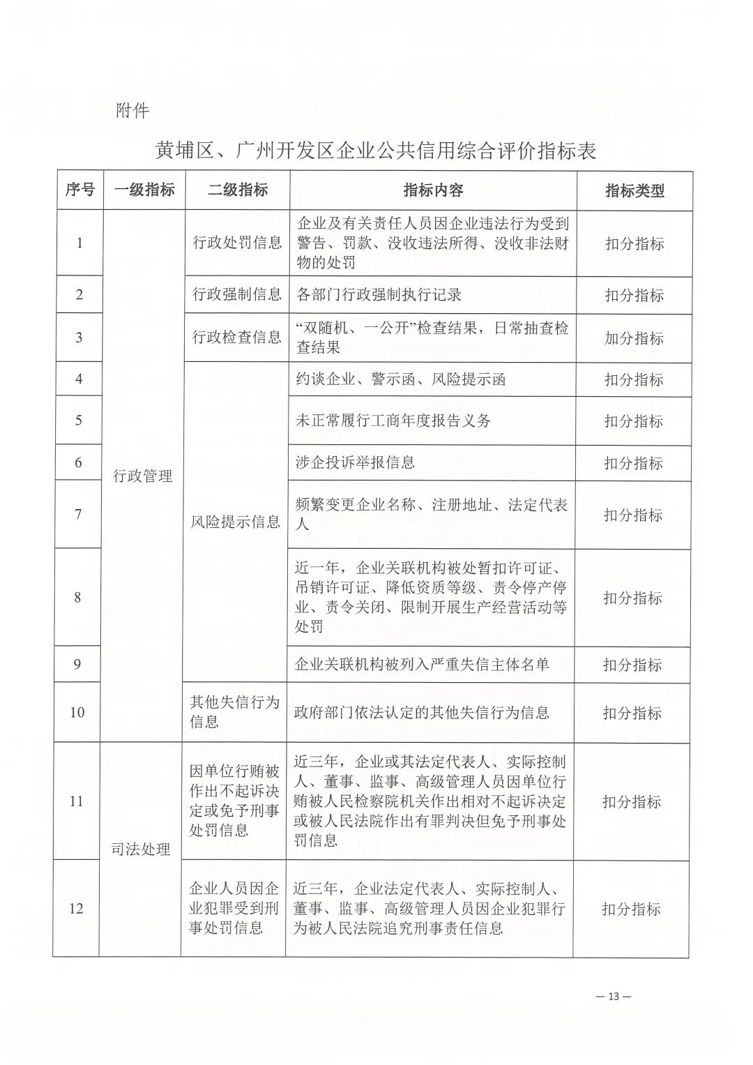 2022年10月修订印发《黄埔区 广州开发区企业公共信用综合评价管理办法》,加强企业公共信用综合评价与单位信用评价联动,对企业进行分级分类监管;