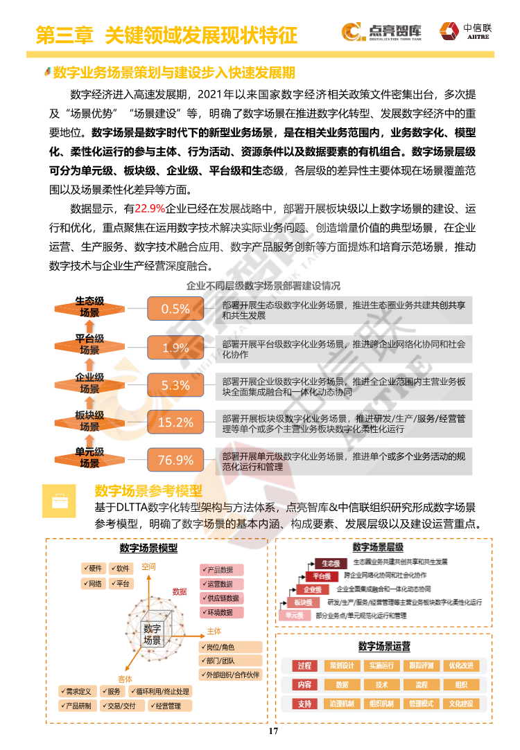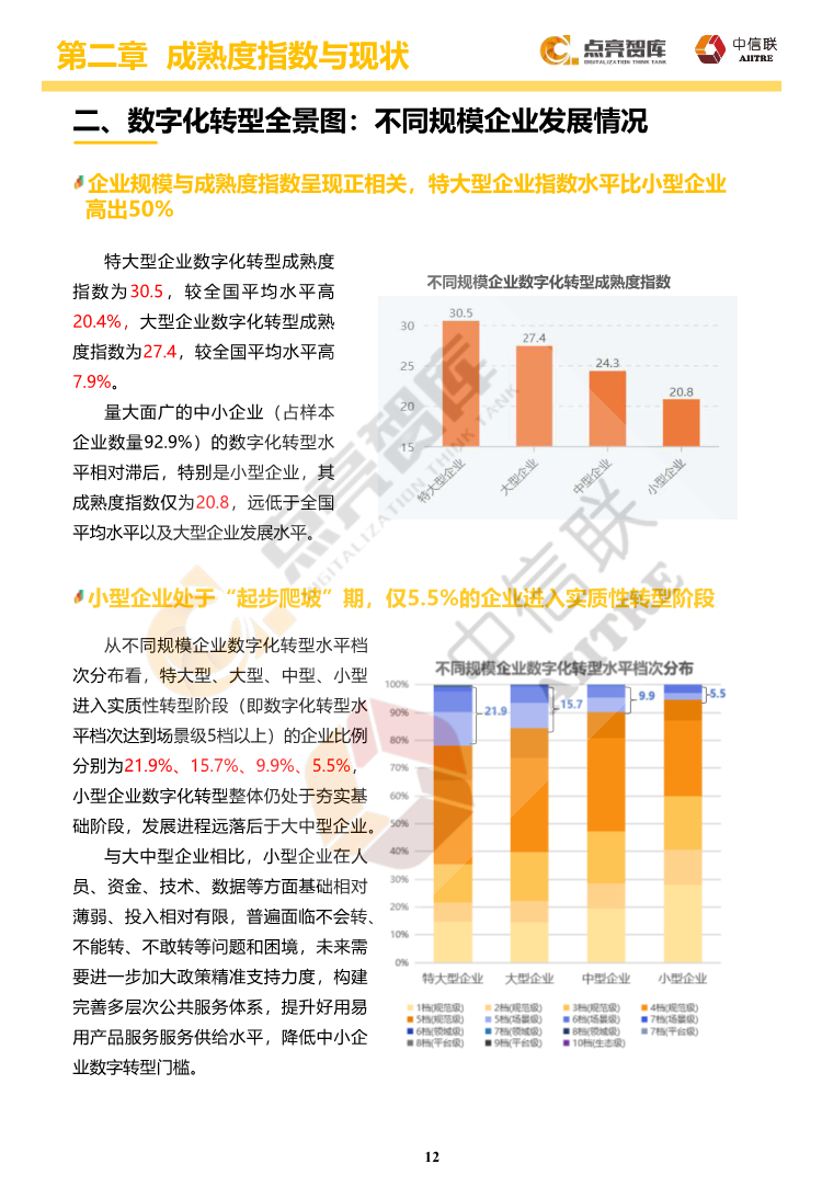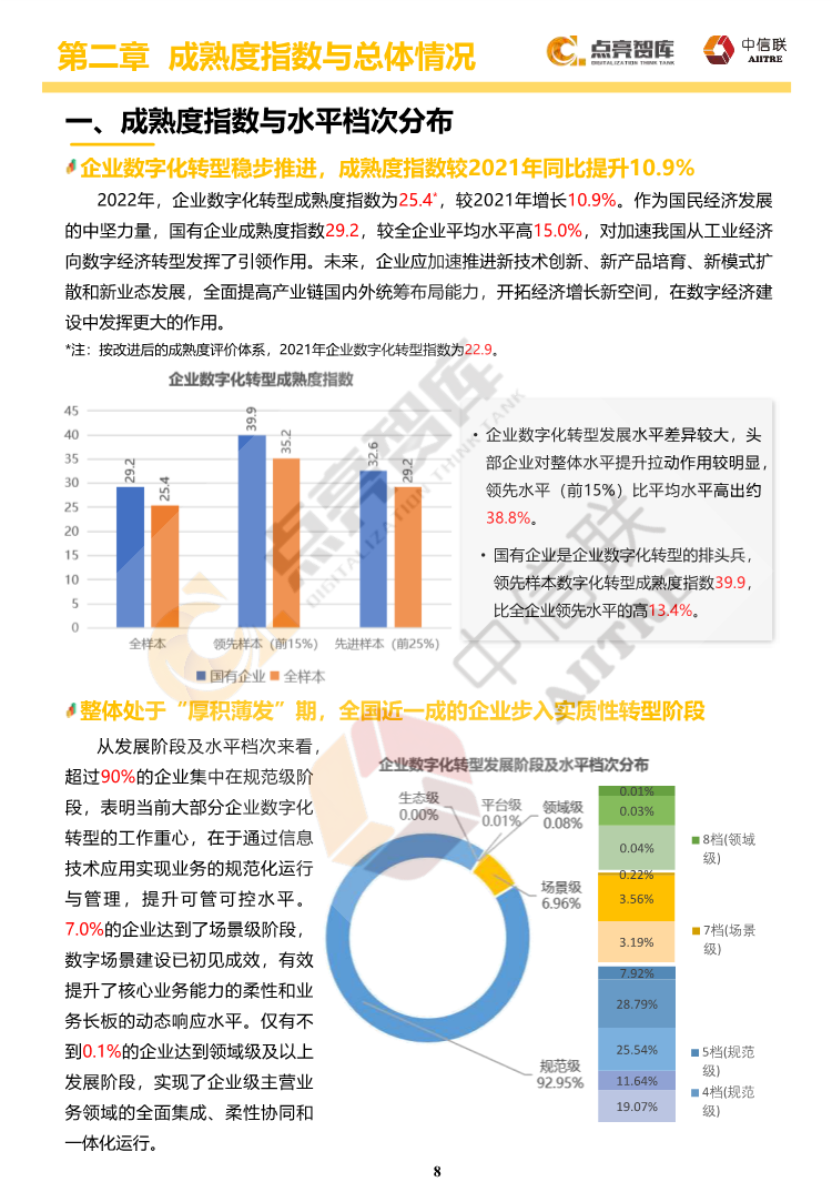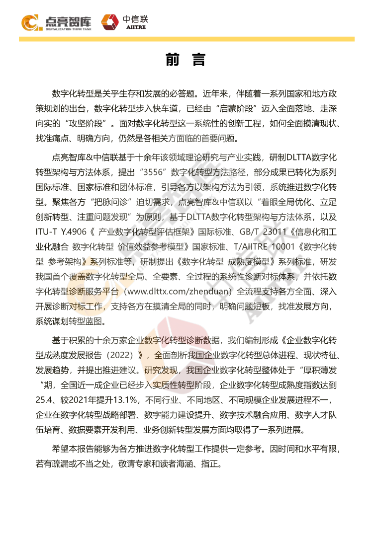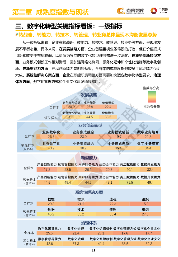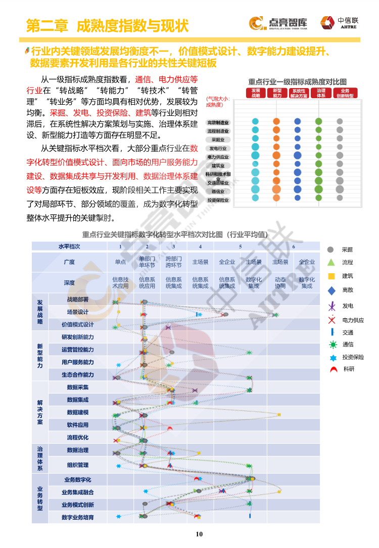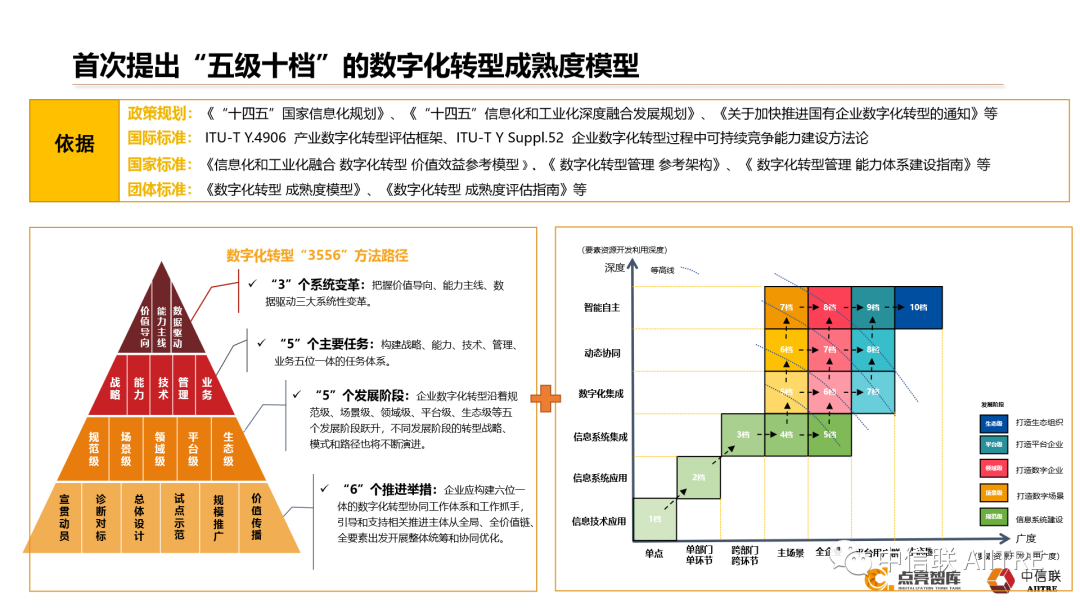 近日,中信联副理事长、北京国信数字化转型技术研究院执行院长陈杰女士发布了《企业数字化转型成熟度发展报告(2022)》,首次提出“五级十档”的数字化转型成熟度模型,全面研判我国数字化转型整体发展现状,绘制数字化转型发展全景图和发展路径,形成以成熟度为抓手系统推进数字化转型的策略。小编提醒,在微信公众号后台回复:20230410,即可下载PDF文档报告!