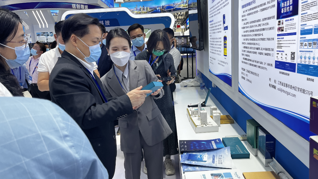 江西承葛生物科技有限公司作为江西省企业代表参展,作为此次学术会议的合作伙伴之一,特设宣传展位展出“菌群移植”体系、大健康体系等产品。会议期间,承葛生物展台吸引了江西省科技厅副厅长陈金桥、铜鼓县工信局党委书记鲍峰颖等领导和众多学术人员前来了解交流。