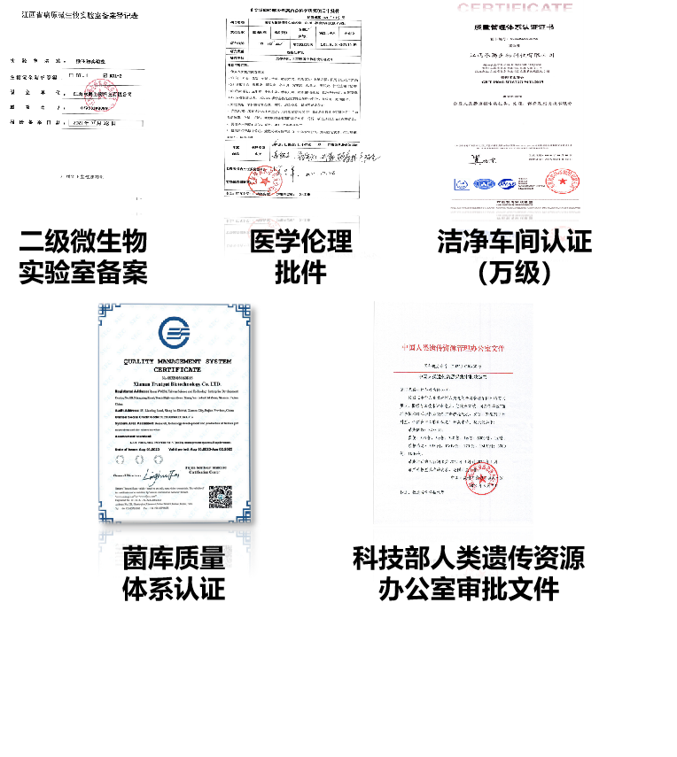 集团是菌群移植领域目前唯一一个获得科技部人类遗传资源管理办公室备案许可的企业,也是国内唯一“五证齐全”的企业。已经完成建设的菌群库有:海峡菌群库、华南菌群库、华中菌群库、长沙菌群库、江西菌群库、西安菌群库、苏州菌群库、河南菌群库、河北菌群库,未来还将在华北、华东、西北、西南地区建设菌库,共同组建形成“菌库联盟”。旨在实现3小时内服务每一个客户。