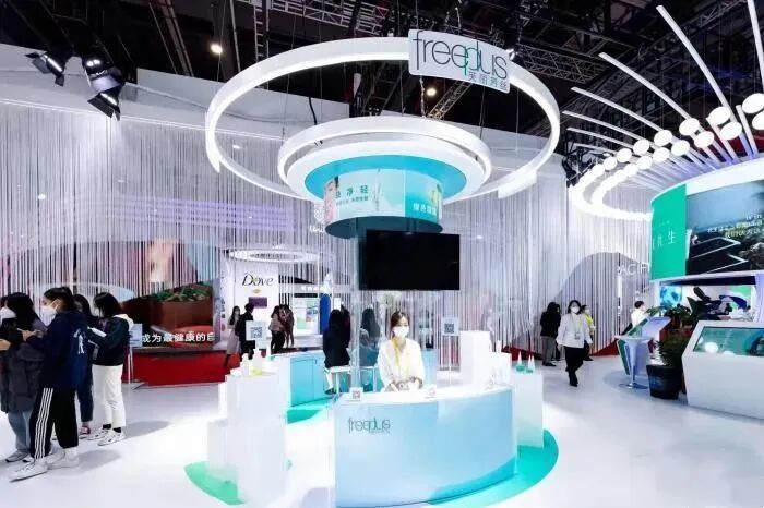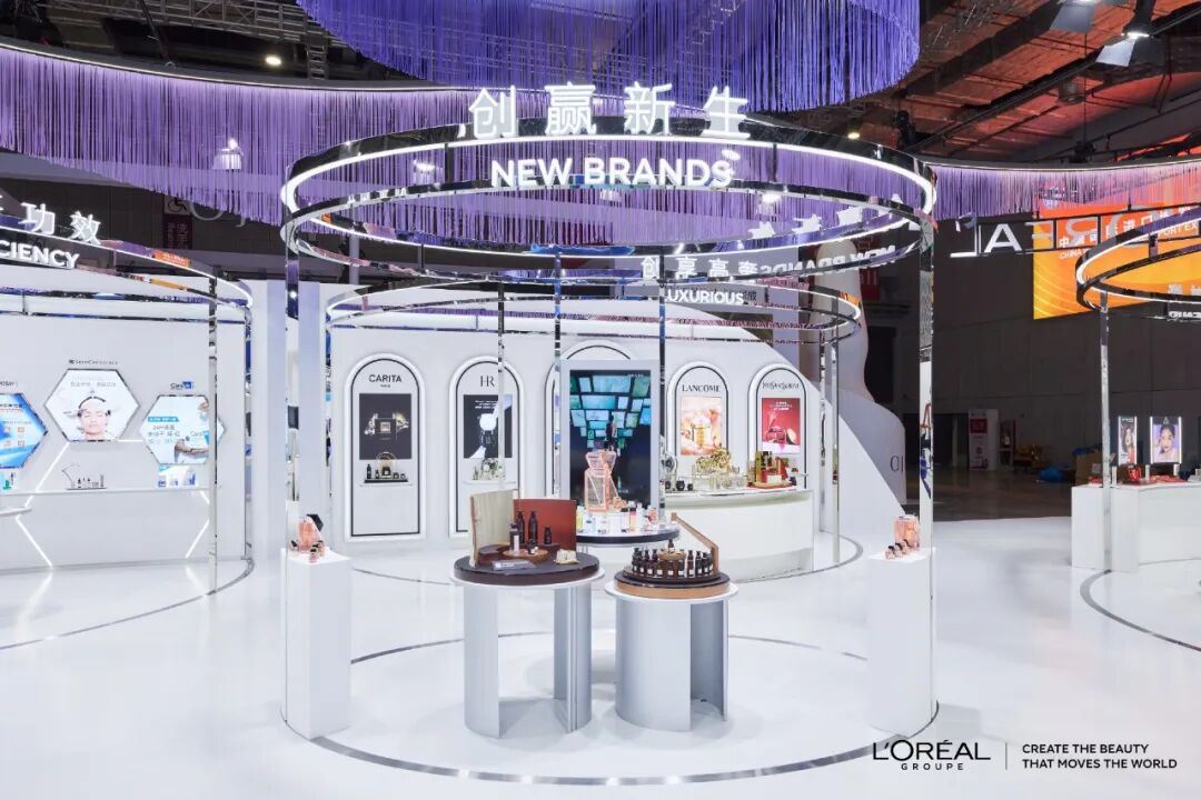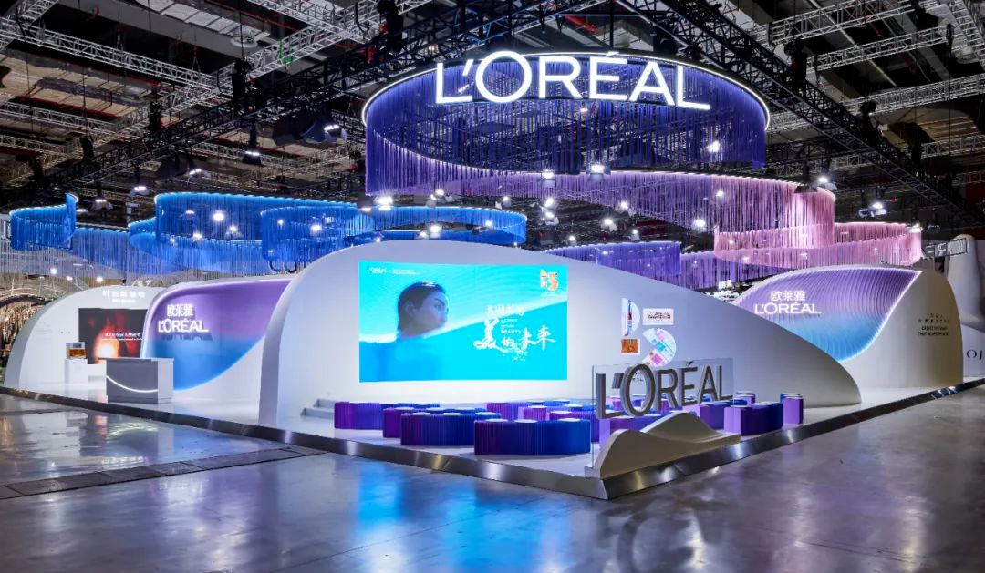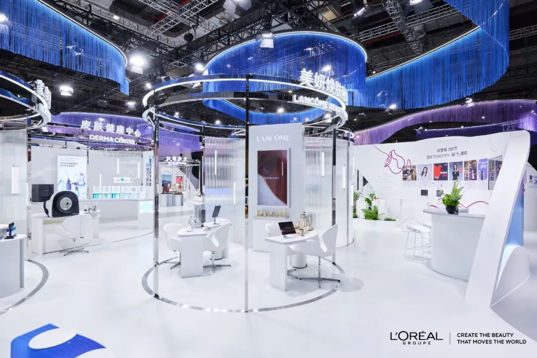 欧莱雅集团首次携双“星”展台亮相进博会,在第五届进博会上,以“共同书写美的未来”为主题,展示多项新投资、新科技、新品牌、新体验等。欧莱雅呈开放式布局的主展台,入眼的白色墙体,曲线连贯而流畅,蓝粉交织的顶部,则恰如水面涟漪,整体呈现出轻盈、灵动的流动之美,独具匠心地将中国传统文化中的水哲学融入展台设计。