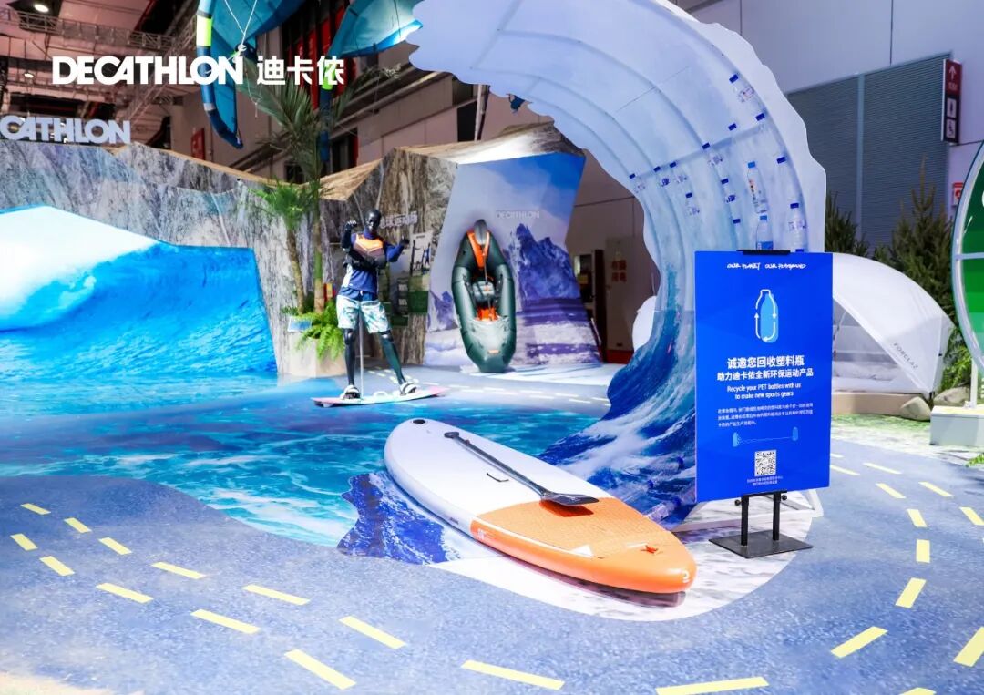 本届进博会,迪卡侬展台以“山海”为题展开设计,设置蔚蓝趣浪、零压山路、欣享露营、潮玩城市四大主题运动区,融合产品特色与环保理念,参展产品100%采用生态设计,打造身临其境的参展体验。参观者可通过户外露营、水上桨板、风筝冲浪、陆地冲浪、山地骑行、健身等多种运动,释放户外运动热情,感受绿色运动魅力。