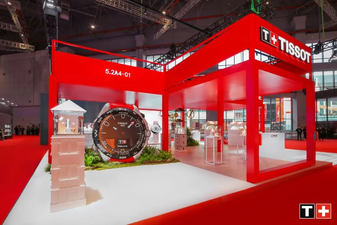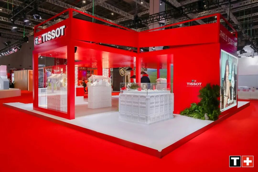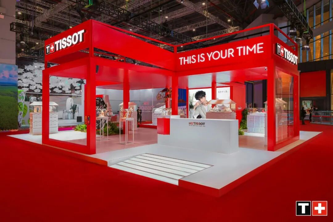 进博会开展当天,以品牌logo颜色为主色调打造的天梭展台于消费品展区正式亮相,红白两色的设计向公众生动展示天梭独特的格调与个性,以及浓厚的“瑞士制造”基因。展台采用创新的“+”造型,风格独树一帜,彰显着瑞士传承制表工艺的高品质。