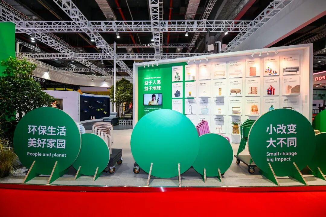 值得注意的是,今年雅诗兰黛集团进博会展馆采用了FSC®(森林管理委员会)认证的木质纤维材料,并获得了FSC项目认证证书。包括木材和钢结构在内的建材将被回收,并通过技术创新和环保行动,来抵消展会期间的碳排放,成为本届进博会“零碳展馆”之一。宜家家居