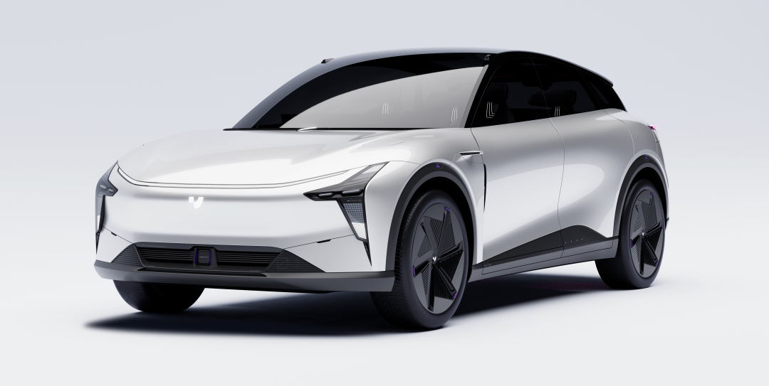 新车是合创旗下首款基于纯电平台打造的中大型 MPV,整体风格硬朗简洁,侧身线条流畅,配备低风阻设计五辐式轮圈。