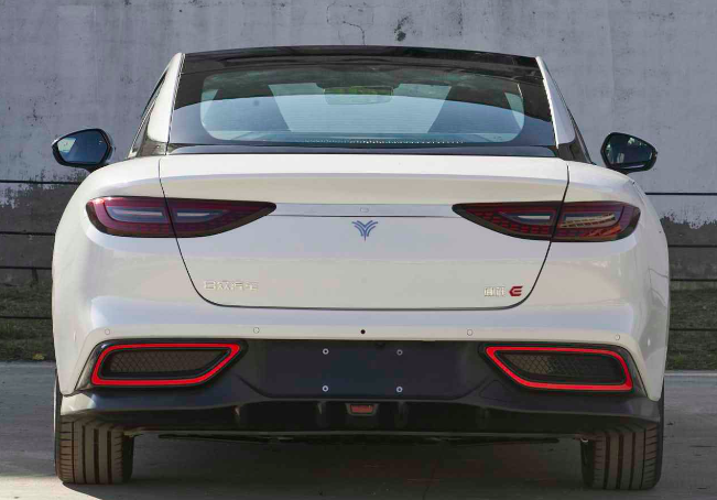 车尾部分,新车配备分体式 LED 灯带,并配备电动尾翼。