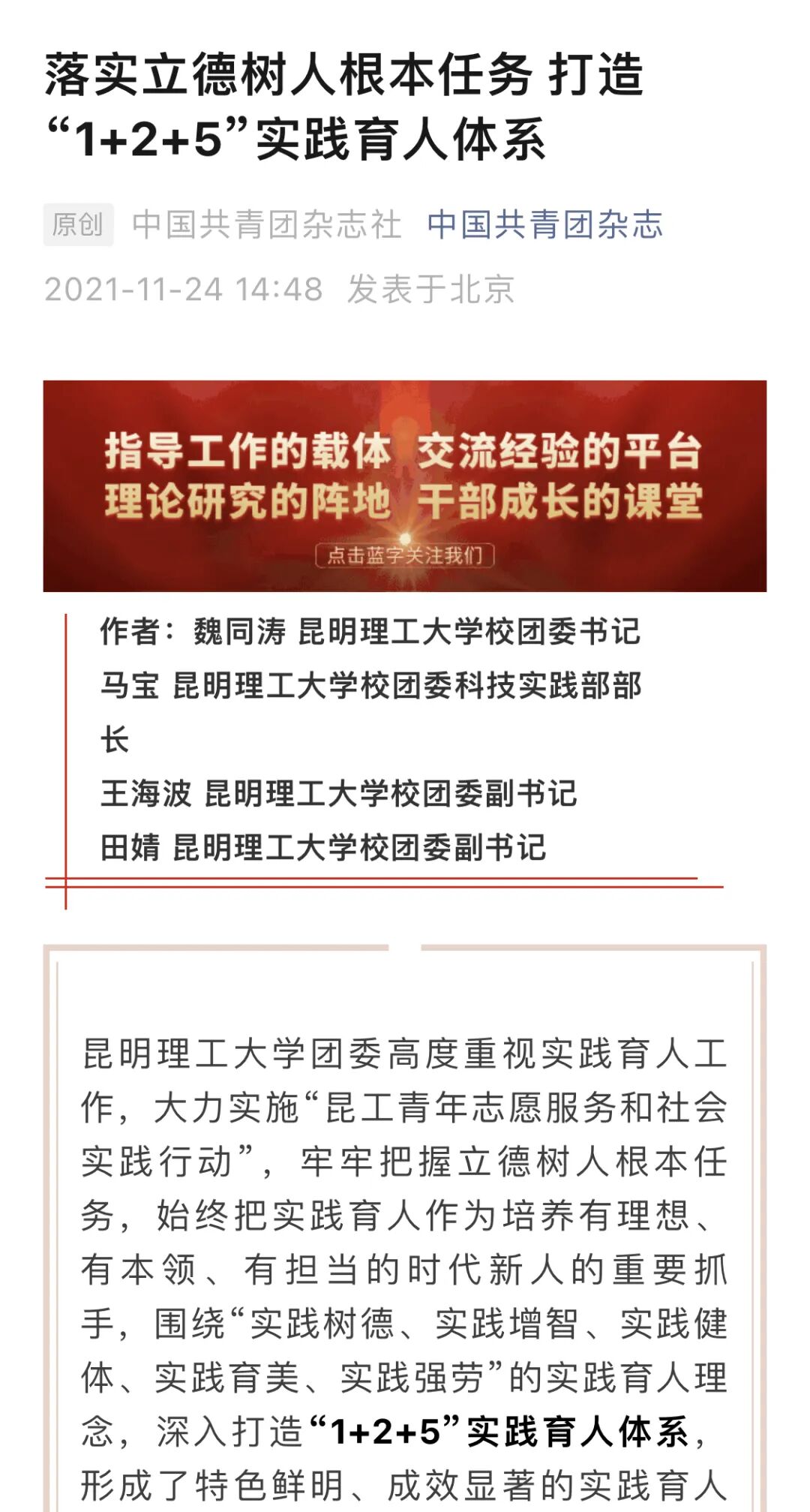 “1+2+5”实践育人体系获《中国共青团杂志》报道