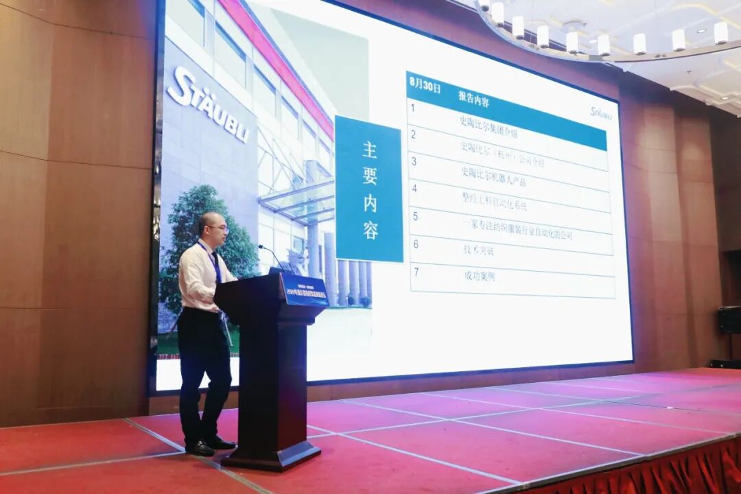 本次论坛还邀请中国纺织机械协会会长顾平、浙江理工大学新昌研究院院长胡旭东、史陶比尔机器人事业部中国区业务副总经理王朋、浙江日发纺织机械股份有限公司研究院院长翟自勇分别作《纺织机械的发展趋势》、《强化纺织装备智能元素,打造纺织智能生产生态》、《机器人赋能中国纺织产业智能化升级》以及《现代纺机助力纺织产业转型升级》的专题报告,对当前纺织机械领域的前沿技术和发展趋势进行深入演讲。