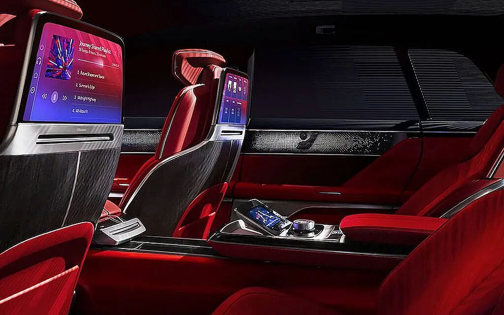 豪华汽车也少不了尊贵与科技感并存的内饰设计。该车内饰使用天然材质的皮革,加上横跨整个座舱的55寸8k显示屏,以及四处可见的小型显示屏,确保所有乘坐人都能亲身体验汽车的智能化。