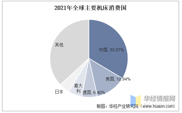 从机床需求市场来看,2021年中国消费额位居世界第一位,在全球需求市场中占据份额为33.57%。美国、德国消费额分别占比12.94%、6.4%,分别位居全球第二和第三。