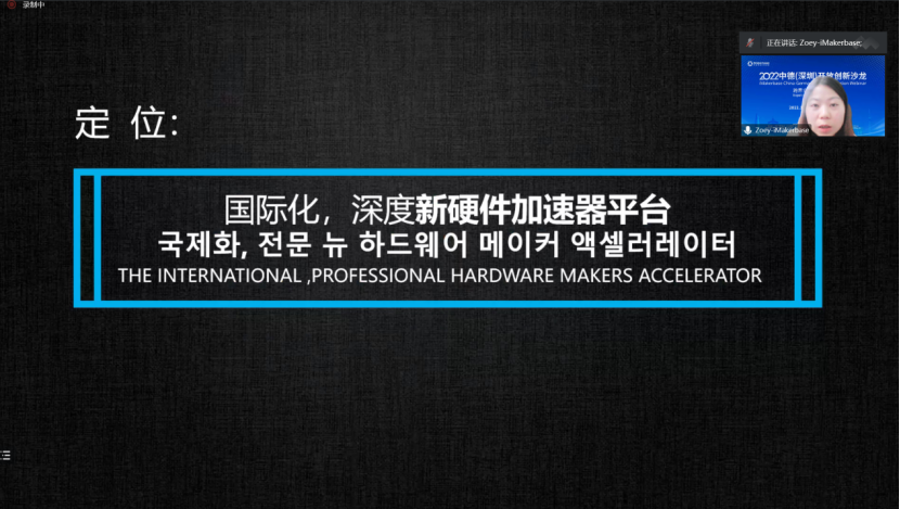 大公坊iMakerbase国际运营副总经理曾霞 主题分享大公坊iMakerbase国际运营副总经理曾霞详细介绍了大公坊iMakerbase国际孵化器的发展历程,核心服务以及服务案例等,并对深圳的硬件创新生态和重要赛道的头部企业作了详细分析阐述,欢迎更多的国内外硬件创业者来到深圳实现创业梦想。