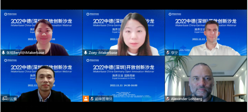 11月11日下午,由世界创新城市合作组织、宝安区投资推广署指导,大公坊iMakerbase国际加速器主办,Parker Alex咨询公司、里克特工程有限公司、清源创新创业研究院协办的“2022中德(深圳)开放创新沙龙”圆满结束。随着开放程度不断提高,世界科技日新月异的发展和进步,越来越多的优秀外国人才投入中国的怀抱。文化是生命,交流是纽带。凭借产业优势,深圳聚集了众多高层次人才,同时也一直注重国际文化的交流和融合,也支持鼓励举办各种形式的活动借此营造开放共享的国际化氛围,打造开放包容的城市文化,吸引国际人才,增强国际人才竞争力。大公坊iMakerbase国际加速器举办中德(深圳)开放创新沙龙第一期,邀请到Parker Alex咨询公司创始人Alexander Lohberg 、商业和技术领城独立国际顾问Alexander Lohberg、里克特工程有限公司创始人Henning Richter、清源创新创业研究院院长 北大创业导师、天使投资人胡云篁等不同领域的外国嘉宾以主题发言和开放式讨论的方式分享在中国创新创业过程中工作生活的感受等。依托iMakerbase国际化平台为外国友人提供氛围轻松,趣味性强的友好交流平台,更好地促进思想碰撞,文化融合,吸引各类人才来到中国,实现创新创业梦想。