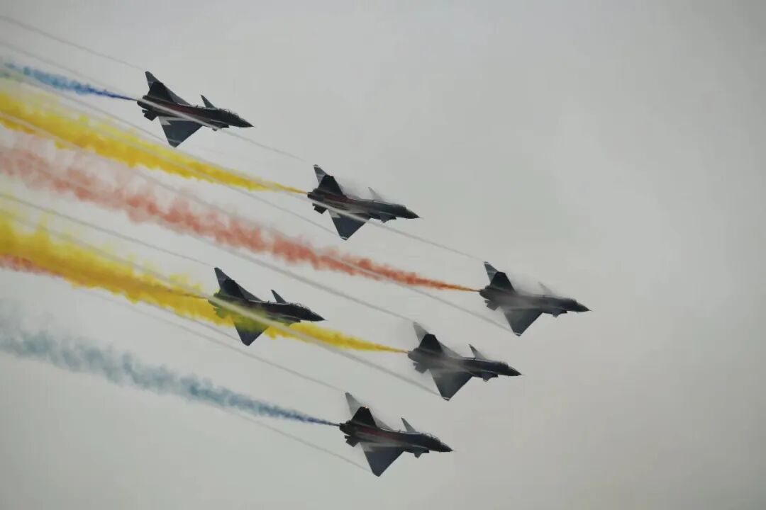 领导宣布开幕之后,早就准备在跑道上的八一队立刻起飞,作为开场节目。当然这已经不知道是我第几次看八一队表演了,再加上天气不好,八一队已经不是大家拍摄的重点了。