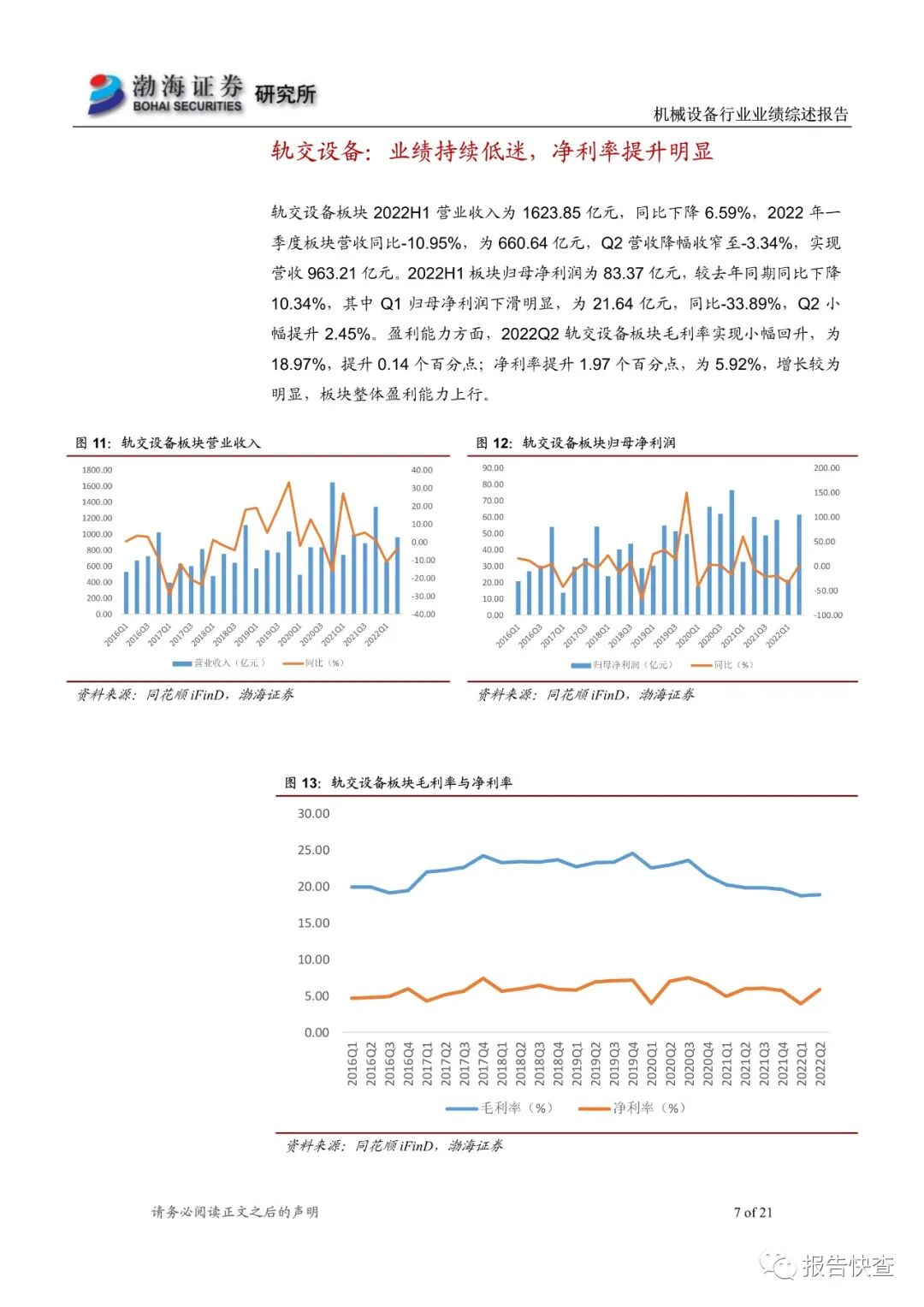 (4)子行业中专用设备板块表现亮眼,板块净利率再创新高,工程机械板块业