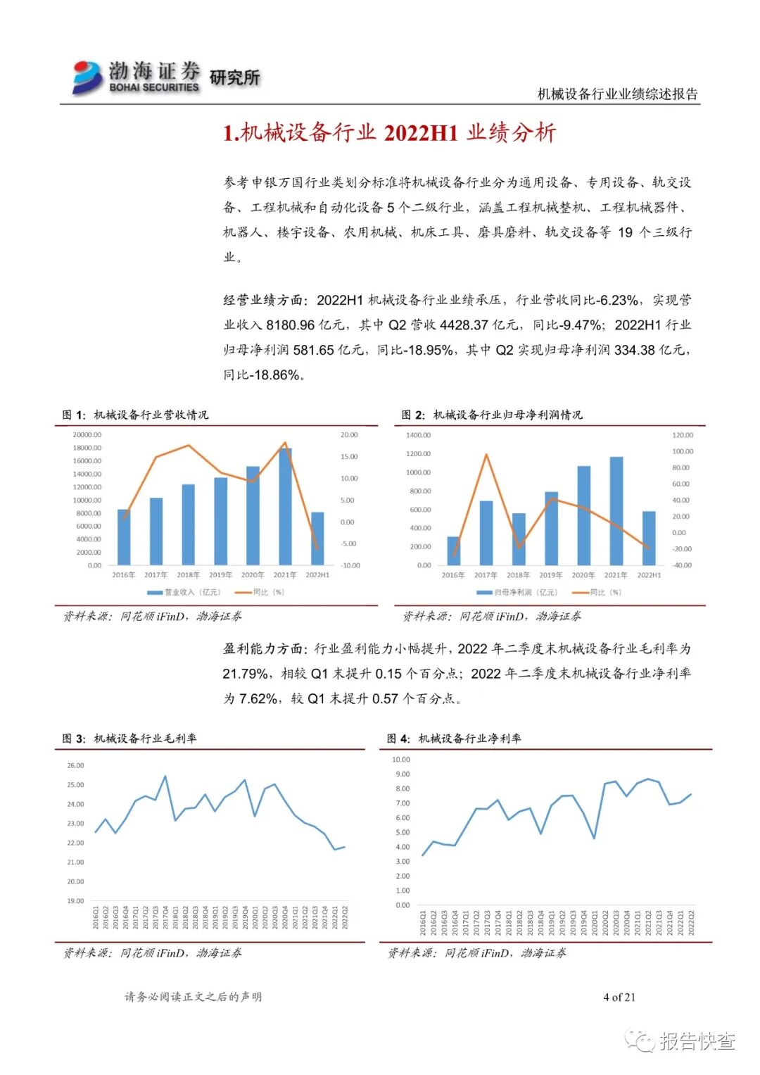 (1)2022H1 机械设备行业实现营业收入 8180.96 亿元,同比-6.23%;归母净利润为 581.65 亿元,同比-18.95%。