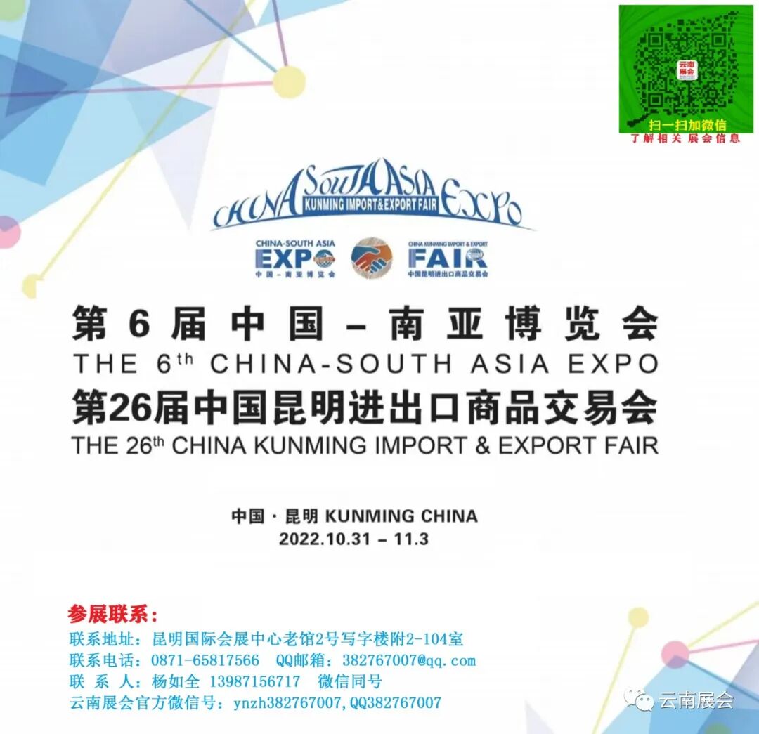 中国—南亚博览会将于2022年10月31日—11月3日在昆明举办。本届展会力争打造集商品贸易、服务贸易、投资合作、旅游合作和文化交流等为一体的高水平综合性展会,成为中国与南亚国家互利合作的重要桥梁,成为中国和南亚国家扩大与其他国家和地区经贸交流的重要平台。作为文化交流等为一体的高水平综合性展会,成为中国与南亚国家互利合作的重要桥梁,成为中国和南亚国家扩大与其他国家和地区经贸交流的重要平台。