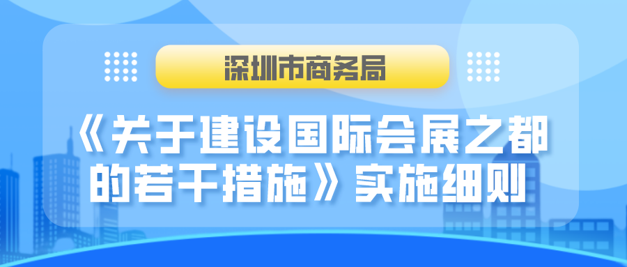2022年5月5日,深圳市商务局发布《<关于建设国际会展之都的若干措施>实施细则》。《实施细则》主要从支持新引进国际知名品牌展会、支持培育专业展会等六大方面,对项目申报单位进行“真金白银”的扶持和奖励。