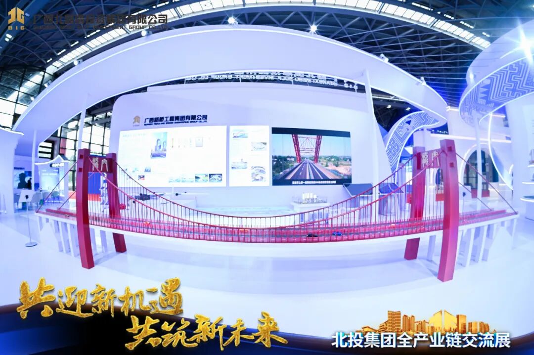 展位涵括北投集团品牌文化墙、三层全产业链沙盘展示模型以及部分直属企业——路桥集团、路建集团、交通设计集团、交科集团、口岸集团、信创集团、产城集团主题展区,让观众对各业务板块与发展成果有了更进一步的了解。