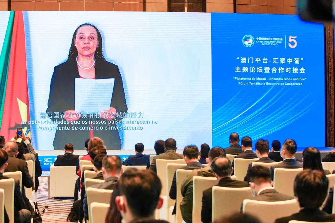 主題論壇環節由中國—葡語國家經貿合作論壇(澳門)常設秘書處秘書長季先峥、莫桑比克駐華大使Maria Gustava以及澳門特別行政區行政會委員、澳門中華總商會理事長馬志毅,圍繞“澳門平台—匯聚中葡”進行演講,分別介紹了中葡平台定位優勢及建設情況和葡語國家的營商環境。
