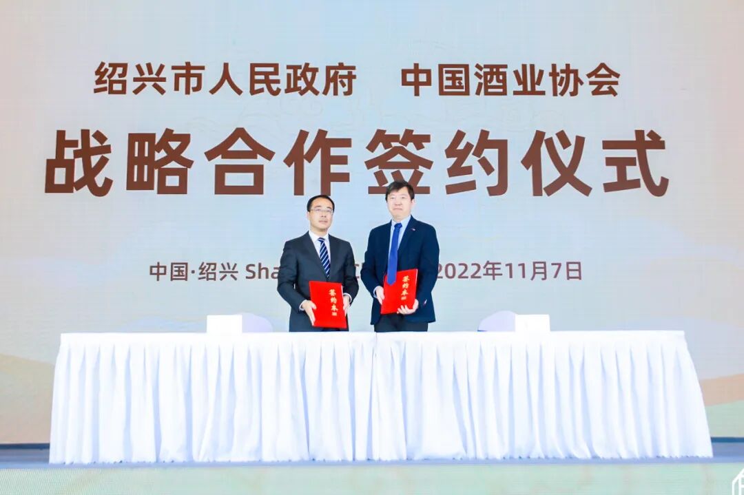 中国酒业协会秘书长何勇、绍兴市副市长鲁霞光上台签约