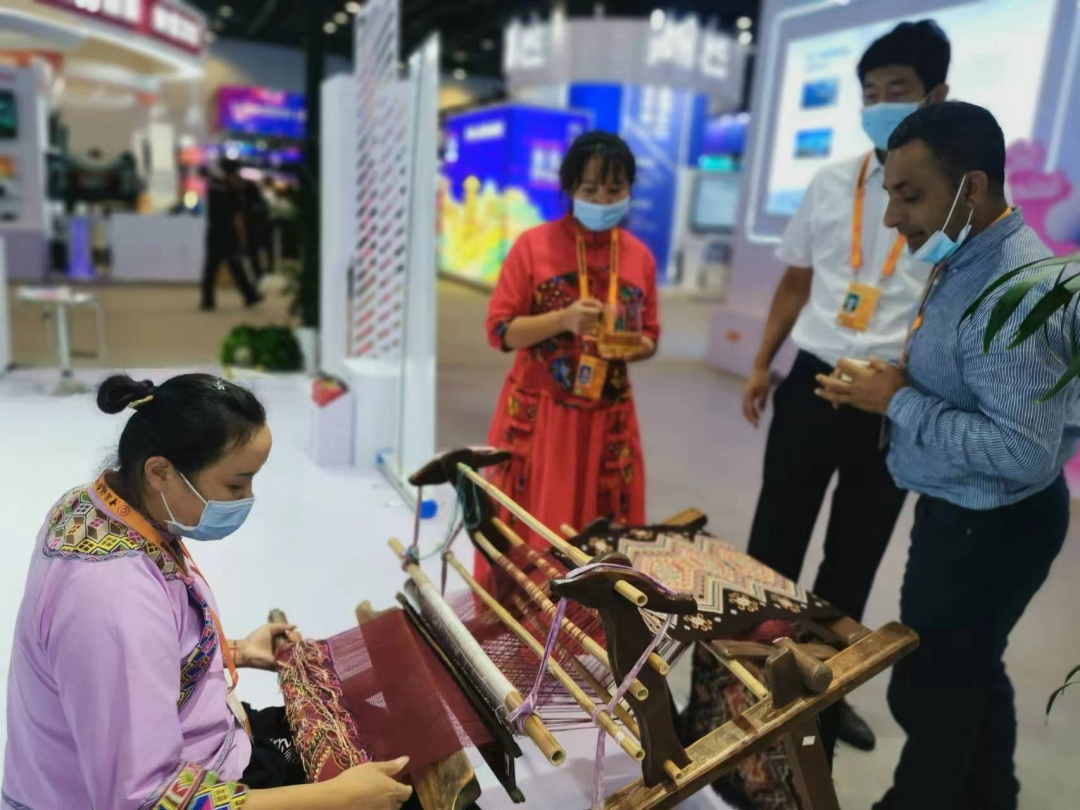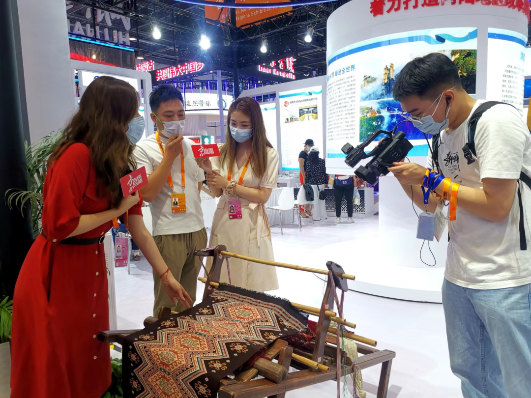 服贸会与广交会、进博会并列为中国对外开放三大展会平台。本届服贸会以“服务合作促发展 绿色创新迎未来”为主题,湖南展团由数字贸易、国际旅游、文化产业、中医药、国际物流、人力资源等领域的服务贸易企业代表组成,共15家企业参展。省商务厅把张家界市的国际旅游板块作为支持首届湖南旅游发展大会在湖南综合形象展示区进行重点推介。走进湖南展览厅,“仙境张家界,峰迷全世界”为主题的张家界宣传片滚动播放,集中展示了张家界山水美景及土家织锦、砂石画、土家刺绣、张家界莓茶等旅游产品。土家织锦现场技艺的展示,吸引了中外参展商和媒体记者的目光前来参观和体验,众多嘉宾纷纷为张家界莓茶口感频频点赞,不少消费者和客商通过刷企业二维码下定单。