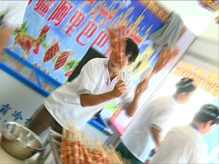 另一边热气腾腾的天津狗不理包子又出锅了。正宗的狗不理包子每一个都有18个褶子,猪肉三鲜馅。参展商介绍说,为了让大家品尝到正宗的狗不理包子,他们所有原材料都是从天津空运过来的,保证味美新鲜。除了鲜美的内蒙羊肉,新疆参展商也带来了上等的羊肉来烤羊肉串,就连做新疆特特色小吃馕的囊坑都搬过来了。