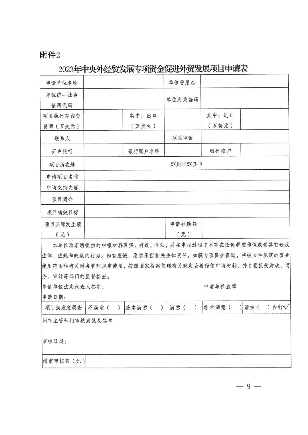 为推动贸易高质量发展,促进外贸稳进提质,促进新业态新模式快速发展,引导进出口协同,优化贸易结构,创新发展新动能,根据省委、省政府系列稳外贸政策措施及专项资金管理办法和实施细则,现将2023年中央外经贸发展专项资金促进外贸发展项目申报工作有关事项通知如下: