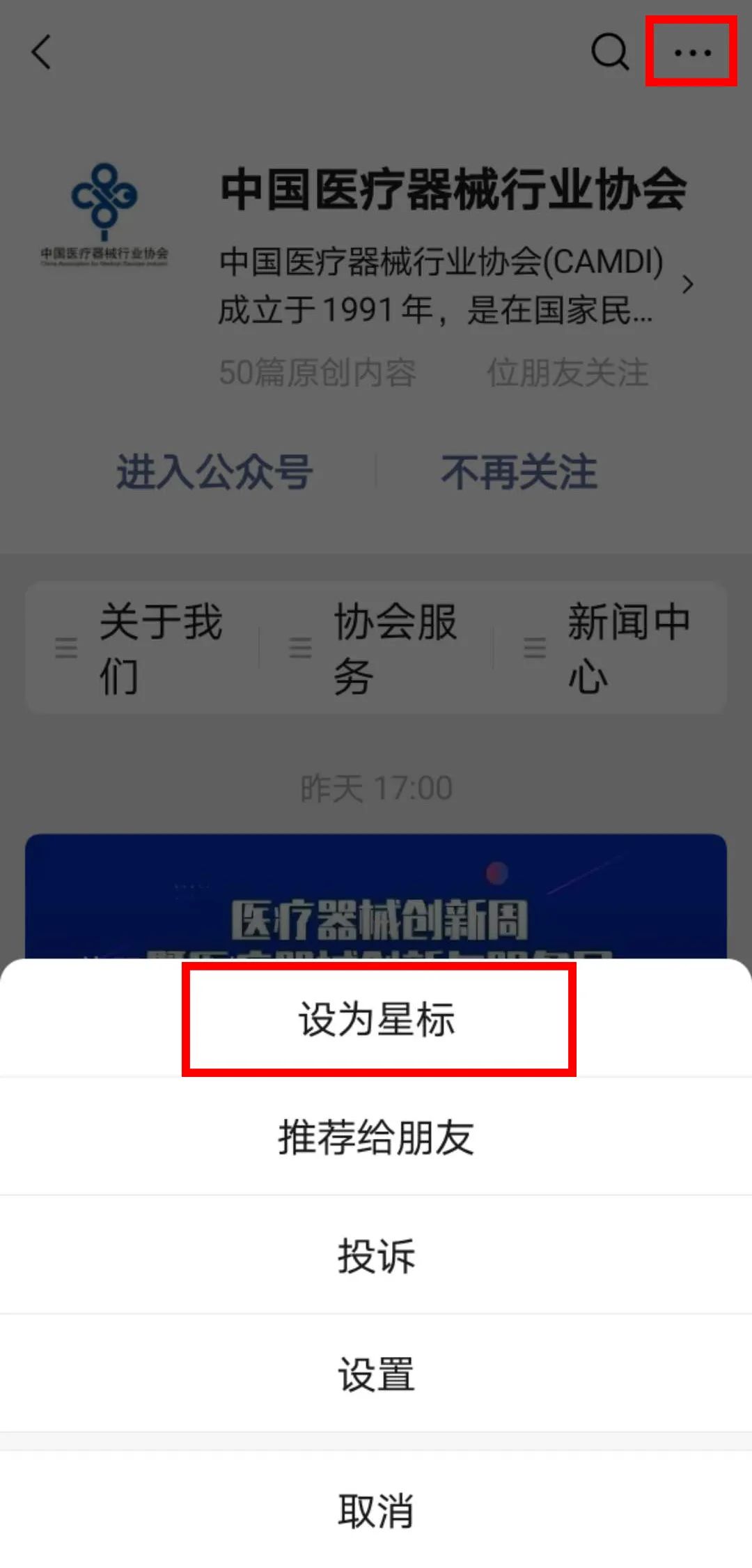 “中国医疗器械行业协会”设为星标