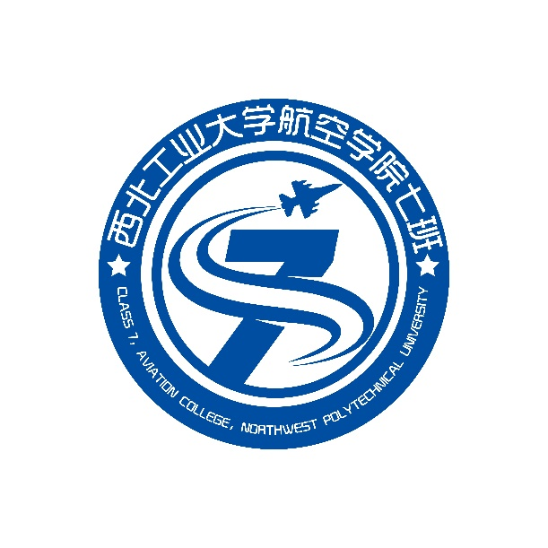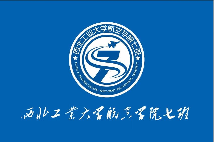 班旗底色为工大蓝,字体为白色,体现了西工大特色,班徽位于正中央,班徽下部字体为毛体“西北工业大学航空学院七班”,与班服上的毛体“工大青年”交相辉映。