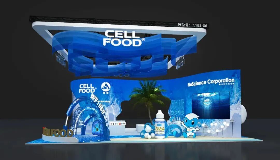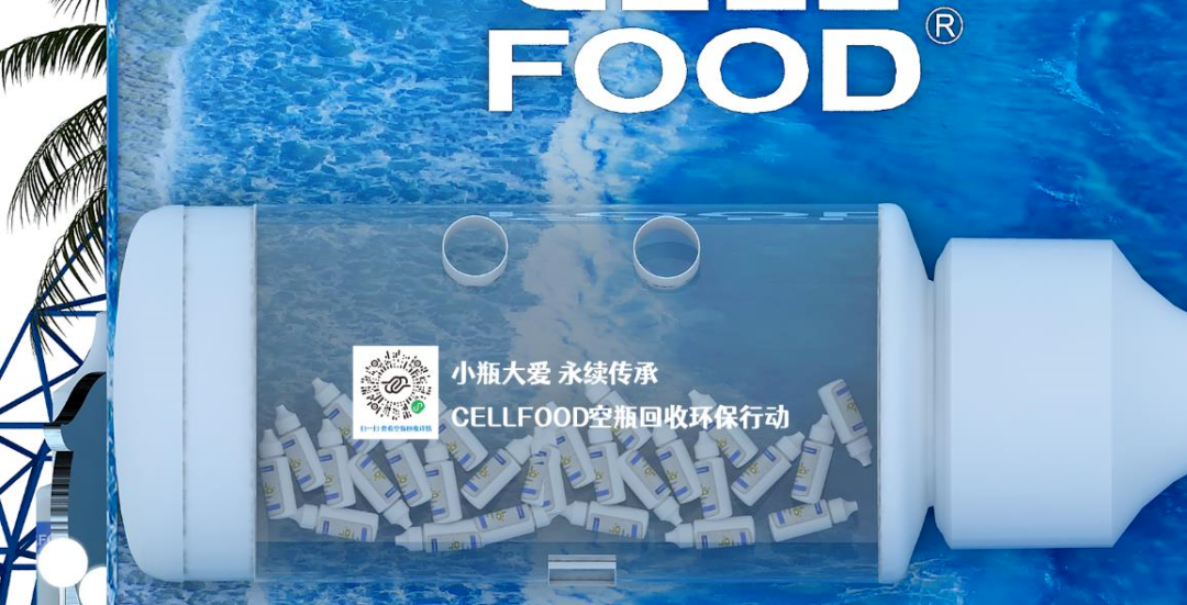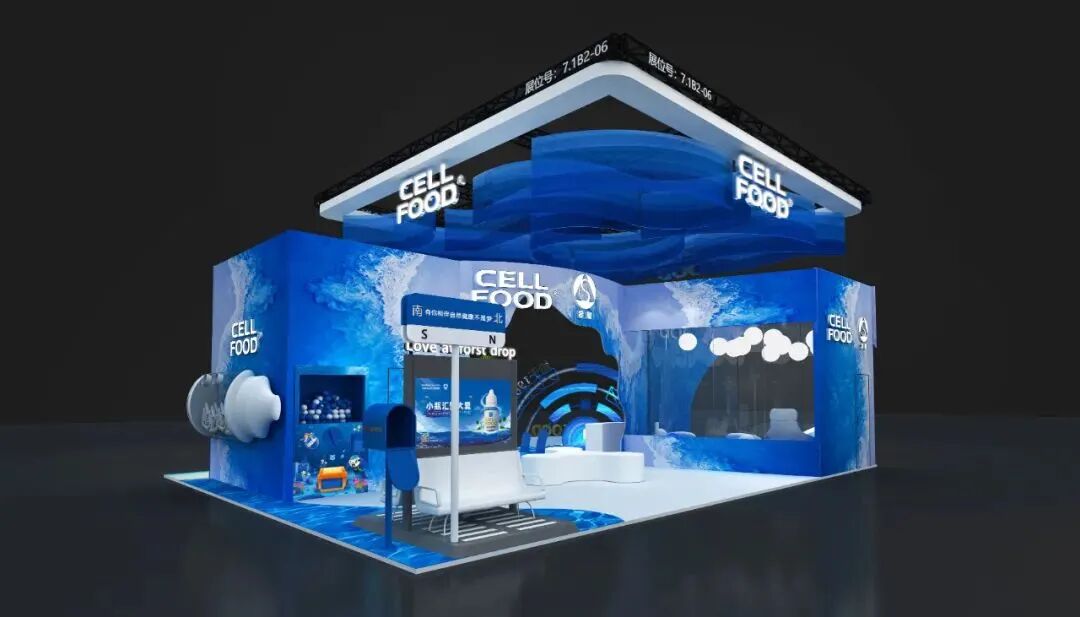 本届进博会,CELLFOOD将展台打造成一座「海洋蓝展馆」,有超多好玩有趣的打卡点等待大家去体验:时间的朋友、天涯海角共举杯、梦想邮递站、空瓶回收区、健康加氧站。